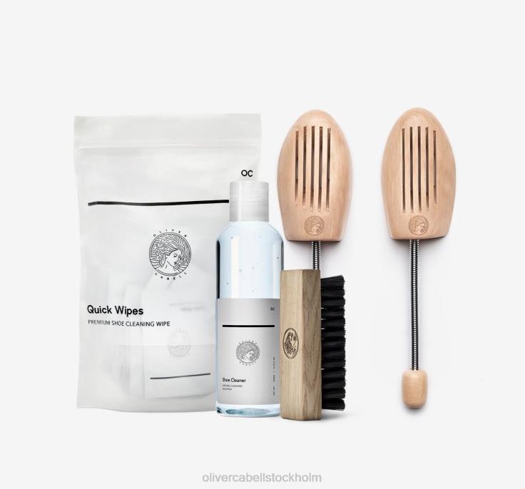 bedrövad betyder inte smutsig. vårt distressed kit innehåller en flaska av vår premium skorengöring, skorengöringsborste, träskoträd och 24 snabbservetter.